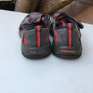 Merrell Little Kid’s Hiking Trekking Hydro Water sandals. Size 10. Quick-drying. Cushy footbed for all day comfort. Flexible outsole with superior grip and traction. Great preowned condition. Part of red Merrell logo is missing on back of one of the sandals. Please check out photos.