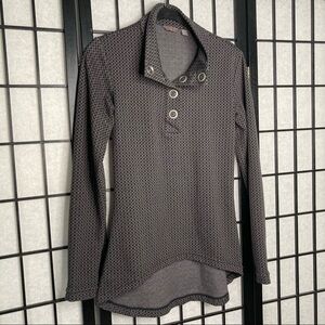 Merrell Long Sleeve Button Top Black Grey Pattern