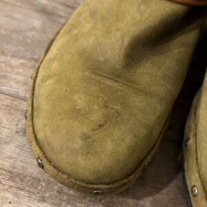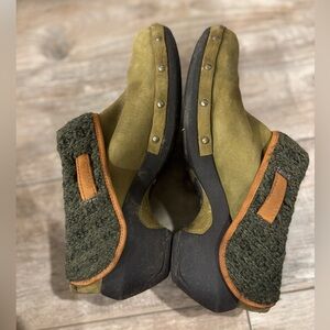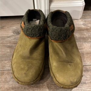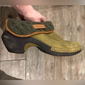 Merrell Luxe Knit Burnt Olive Clogs Women's Size 8.5 Slip On Comfort Sandals Mule. Gently worn with a VV Price Sticker on the inside of one heel. A couple water marks on top of left and right shoe that can easily be wiped! Please see pics above for details.