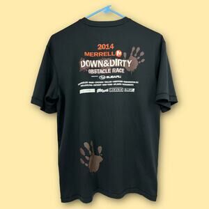 Merrell MEDIUM Mens Black 2014 Down & Dirty Obstacle Race Short Sleeve Tee Shirt T-Shirt