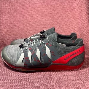 Merrell Mens Bare Access Hyperlock Flex Knit Running Shoes Size 11.5 Gray Red
