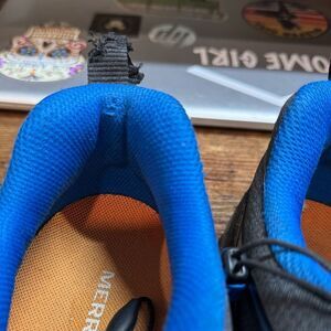 Something sticky on spots on top I think are from the blue parts of the shoes design
