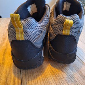 Pre-owned boots, worn but in good condition. See pics for more details. Scuffing and some wear along back/ankle cuff. Moderate wear on bottom soles/tread.