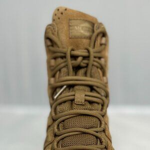 This is a Waterproof Suede with a Ballistic Mesh Upper. DRY impermeable membrane seals out water and lets moisture escape. Traditional lacing system with bellows's tongue to keep out debris and breathable mesh lining. Perfect winter or work boot. Barely Worn and in Great condition, it comes from a Smoke-Free Home.