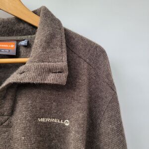 Merrell Mens XXL Brown Wool Blend Pullover Collared Fisherman Neutral Sweater