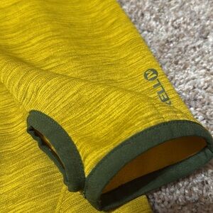 Stay stylish and comfortable with this vibrant yellow half-zip jacket with thumb holes. Perfect for the adventurous guy or gal.