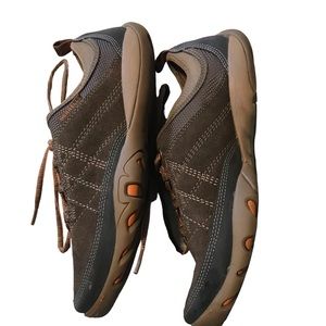 Merrell Move Women’s Cocoa Brown lace up sneakers. Great shoes for comfort and being on your feet a lot. Shoes are in good condition with no known flaws.