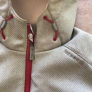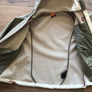 Fleece lined, pit zips, pockets! This jacket keeps you going strong in style. Color is a khaki green/brown