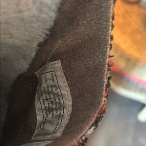 Stylish slip-on shoes with a unique pattern. Features a blend of dark and red tones.