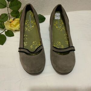 Merrell Petunia Gray Mary Janes Slip-on Suede Wedges Shoes 7/37.5