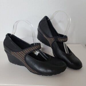 Merrell Poppy Black Leather Mary Jane Wedge Cushion Vibram Sole Shoes Size 9.5