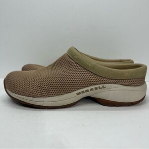 Merrell Primo Breeze II Slides Slip On Shoes Clogs. Women’s size 9.5. Good condition. Peeling/chipping/cracking on the vinyl upper area as shown in pics. Price adjusted accordingly.