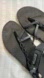 The back ankle strap has a soft blue pad on it for comfort and to eliminate rubbing. The inside of the pad has a faint X on it that does not have any effect on performance. Just cosmetic. Lightweight, great for minimalist packing when traveling.