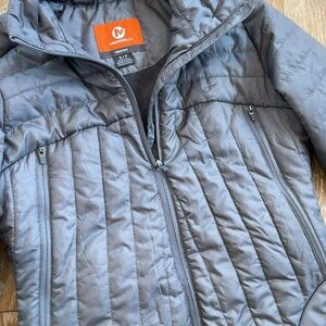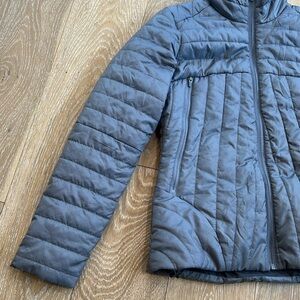 Very nice gray Merrell quilted puffer jacket. Zipper pockets in front. Excellent preloved condition!