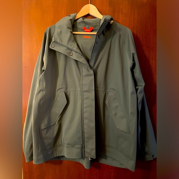 Women’s whisper rain shell jacket by Merrell in beautiful sage green color. Size L. Soft fabric. Merrell claims:
