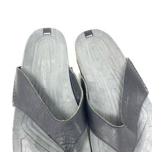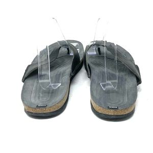 Merrell black leather thong sandals. Men's size 12. A few marks and signs of wear (see photos). In good pre-owned condition. Box not included.
