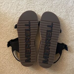 Black Merrell Sandals, size 10, worn once. Great condition. Slight platform height.