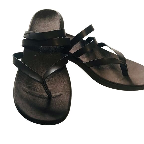 Brown leather strap sandals. Cushioned footbed.