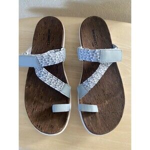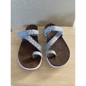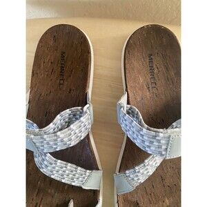 Merrell Sandals Womens 10 Gray White Sunvue Slip On Toe Strap Lightweight Beach