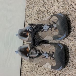 gently used Merrell hiking shoes! Color: tan and purple/blue Size: 9.5 US Brand: Merrel