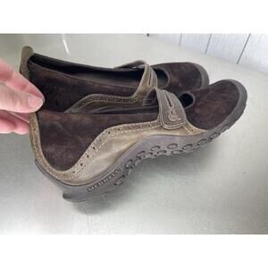 Merrell Shoes Women’s Brown Suede Plaza Bandeau Mary Jane Slip On Wedge Size 7.5