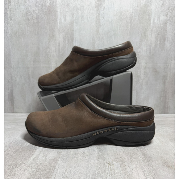 Merrell Shoes Womens Size 9 Brown Jungle Prime Leather Clog Mule Slip On Nubuck