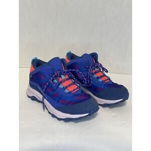 Elevate your child's athletic style with these Merrell Moab Speed Low Waterproof athletic shoes. Perfect for both little and big kids, these shoes feature a waterproof design to keep feet dry during any outdoor activity. The blue, berry, and turquoise color combination adds a pop of color to any outfit.
