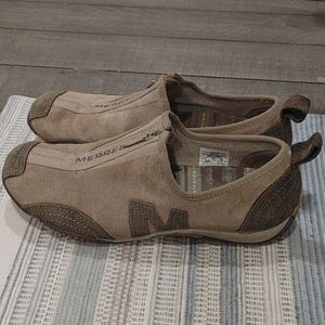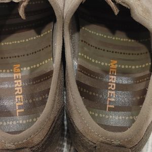 These are the Barrado style. They are suede with a zip up front. Th body of the shoe is of a khaki color with olive green accents. No stains or marks. Insoles and outer soles are clean. Size 6.5