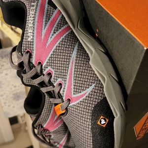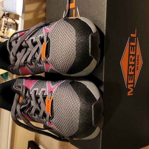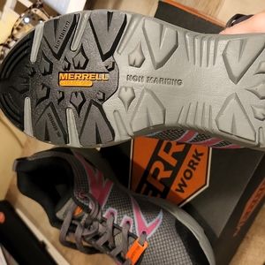 Merrell Women's FullBENCH 54 AT work safety sneaker, alloy toe, charcoal/pink & black, size 7, slip resistant, oil resistant, comfort base technology, from smoke-free home