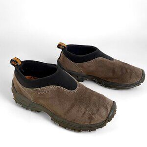 Merrell Suede Slip On Winter Mocs in Gunsmoke Brown Trail Shoes, Size 8.5