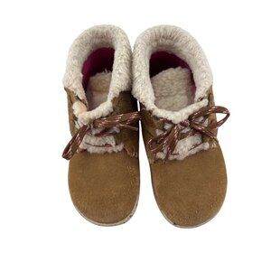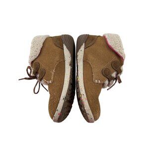 Merrell Toddler Suede Boots Bare Steps Lace Up Brown Pink Sherpa Lined sz 9