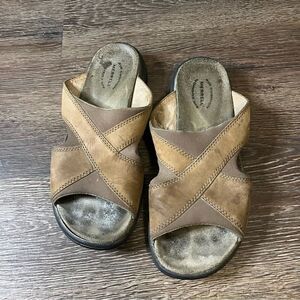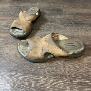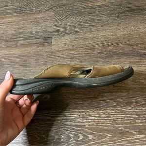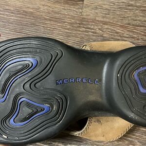 Merrell Topo Cross Stone Tan Crisscross Suede Sandals
