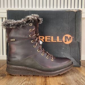 Merrell Tremblant Ezra Lace WP Ice+ Women Sz 7 Brown Leather Vibram Winter Boots