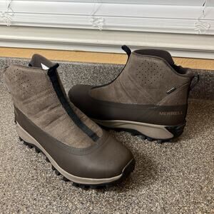 Merrell WARM 200 gram insulation Men's Size 14 Thermo Snowdrift Zip Up Mid Shell Winter Boots Brown Leather