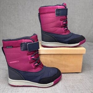 Merrell Waterproof Snow Boots Kids Winter Boots Pink Purple Lace Up Hook Loop 8