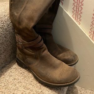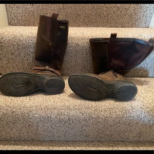 Zip up inside of leg. Tapered in at ankle for super flattering look. Weatherproof with grip soles. Still in good condition. 13 1/2” shaft.