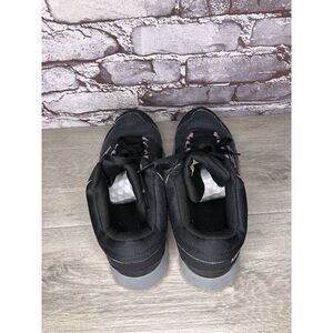 The Merrell Wildwood Mid Waterproof Trail Running Hiking Shoes are designed for women in size 9.5 US (7 UK). These lace-up sneakers feature a mid-top shoe shaft style with a black colorblock design. They offer comfort and performance with features like cushioning, arch support, and breathability. Ideal for activities like hiking, walking, and gym training, these shoes have a rubber outsole and synthetic upper material.