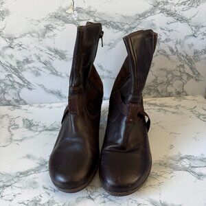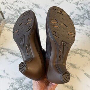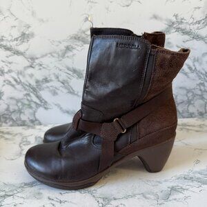 Merrell Women 8.5 Evera Fade Boots Brown Leather Side Zip Heel Mid Calf Shoe