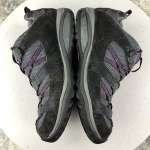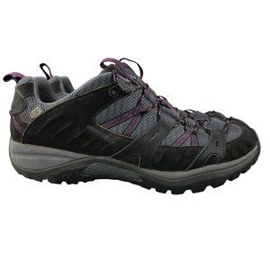 Women's Siren Sport 2 Damson black, gray, and purple Q-dry hiking shoes. Closed toe, pull tab at heel, lace-up closure.