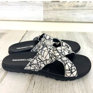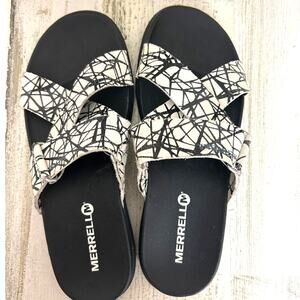 Merrell Women’s 7 Around Town White Black Leather Strap Sandals New