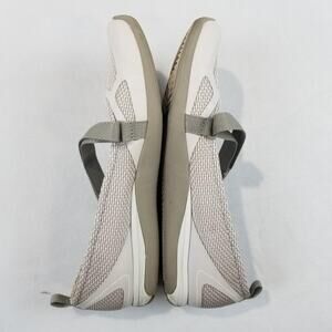 Lightweight performance flats featuring breathable mesh uppers, elastic Mary Jane strap, cushioned insoles with Select Fresh technology, and flexible traction soles. Comfortable, supportive everyday walking shoe. Preowned excellent with minimal outsole wear shown.