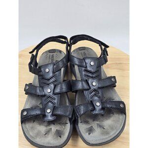 Merrell Adhera Strap Cement Hook and Loop Walking Sport Sandals J55240 Sz 7. In good pre-owned condition. Flaws-some light wear on bottom back soles- footprint in footbed see pictures above.