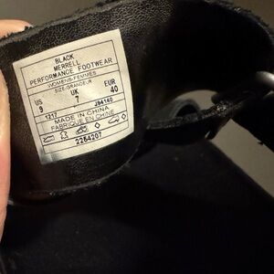 Merrell black slide sandals. Silver buckle detail. Size 9. In wonderful condition.