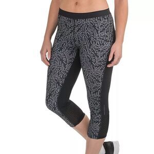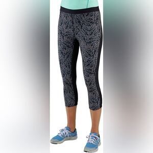 Whether you’re working out, or just running some errands, you will love these capri tights from Merrell. Black and gray designs on the front and solid black in the black. Mesh accent on the bottom of the back of the capris, and pocket on the back of the waistband. Excellent condition!