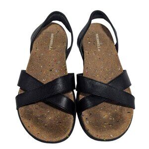 Merrell Womens Napa Valley Sandals Sling Cross Cork Black Leather Sandals Size 9