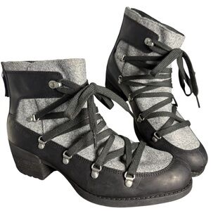 Search Tags: Merrell Shiloh II Warm boots, women’s size 10.5 leather wool ankle boots, black gray lace-up block heel boots, Merrell winter cozy outdoor boots