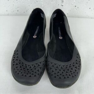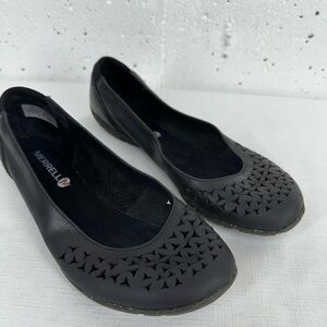 Merrell Women's Size 7.5 Mimix Haze Black Leather Cut Out Slip On Ballet Flats