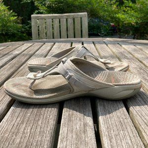 Merrell Womens White Sandals/Slides - Size 7M. Well-worn and loved. Nubuck leather upper with some webbing for support and comfort. Tread still in very good shape. Lots of life left in these Merrells. Super comfortable for walking or hiking or as slippers. Please see photos.