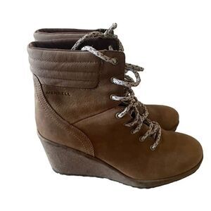 Merrell Women's Tan Tremblant Wedge Waterproof Lace Up Boots SZ 7.5