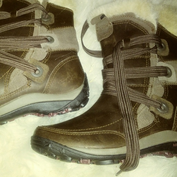Worn once, great condition, size 7 merrell boots. Waterproof and bought for 130. Just not for me. Choclate color with off white faux fur im the outter lining.
